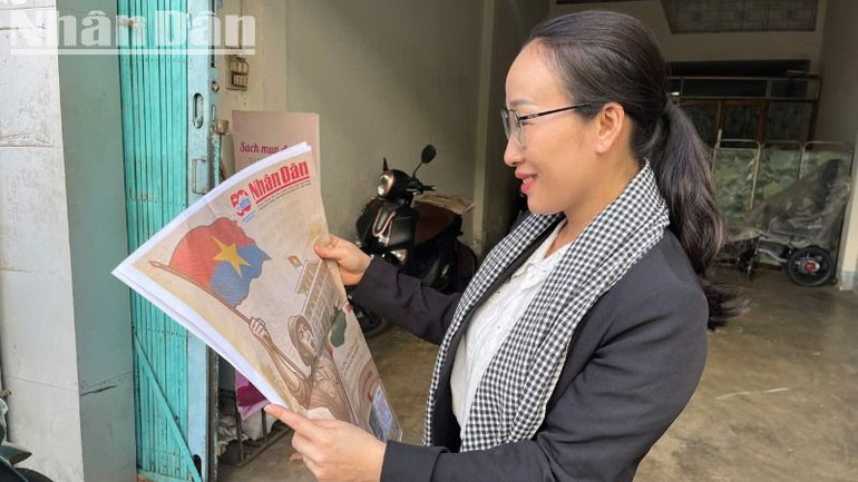 Còn cô Nguyễn Thùy Trang, giáo viên Trường tiểu học Hà Huy Tập, xã Dray Sáp, huyện Krông Ana vượt hơn 25km lên thành phố Buôn Ma Thuột để nhận phụ san. Cầm tờ phụ san đặc biệt của Báo Nhân Dân kỷ niệm 50 năm Ngày giải phóng miền nam trên tay, cô Trang như thỏa ước mấy hôm nay háo hức chờ đợi.