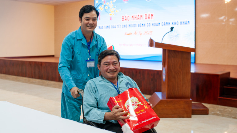Dưới đây là những hình ảnh ấm áp tại chương trình trao tặng quà Tết cho người bệnh có hoàn cảnh khó khăn Xuân Ất Tỵ 2025 do Báo Nhân Dân phối hợp Bệnh viện Đà Nẵng tổ chức: