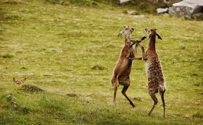 Một cặp hươu mới trưởng thành giao tranh với nhau.