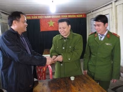 Phó Chủ tịch UBND tỉnh Nguyễn Văn Du khen thưởng, động viên lực lượng công an làm nhiệm vụ giải toả tại mỏ vàng