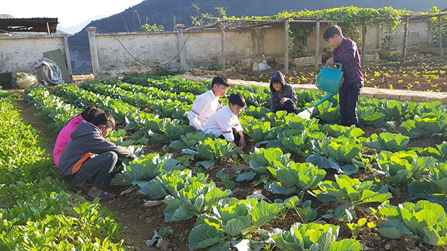 Một góc mô hình “trường học nông trại” của Trường PTDTBT THCS xã Tà Mung, huyện Than Uyên (Lai Châu).
