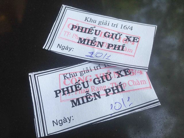 Phiếu giữ xe miễn phí cho khách khi vào Công viên 16 Tháng 4 uống cà-phê.