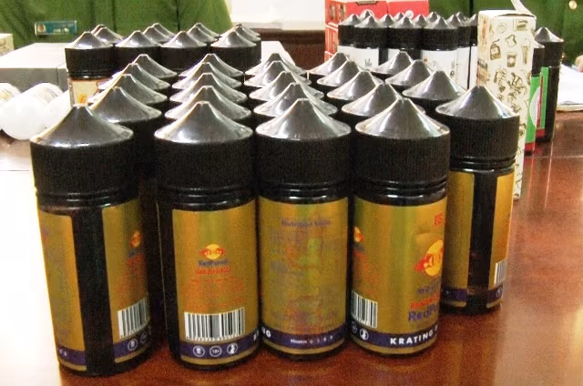 Công an phát hiện 237 chai tinh dầu các loại phục vụ hút thuốc lá điện tử.