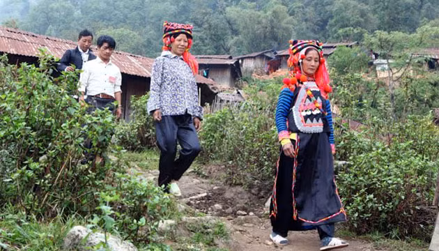 Người dân bản Là Pê 1, xã Tá Bạ đến điểm bỏ phiếu.
