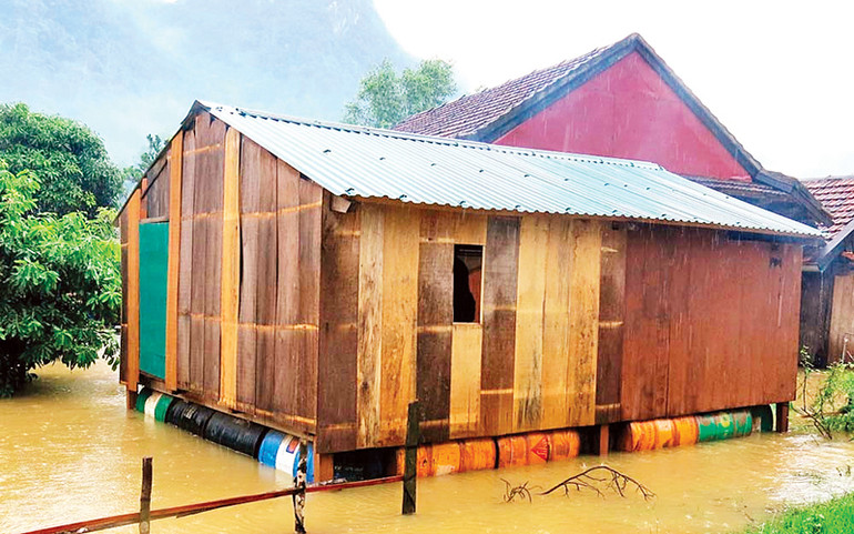 Nhà phao phát huy hiệu quả trong lũ. Ảnh | MINH HẠNH
