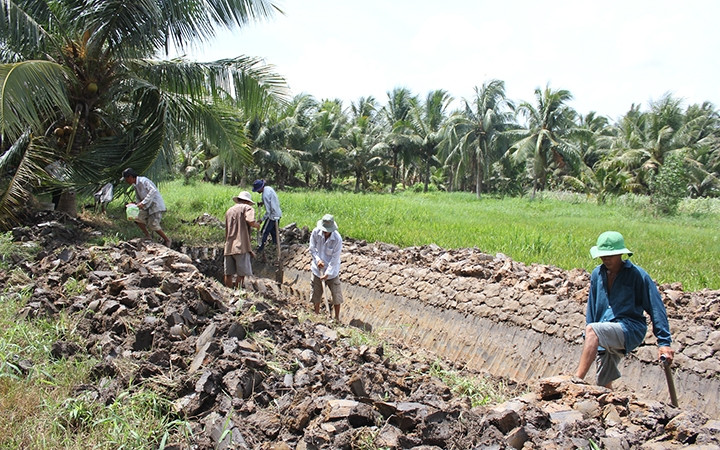 Cuối tháng 12-2019, nước mặn đã xâm nhập sâu vào nội đồng ảnh hưởng rất lớn đến sản xuất và sinh hoạt của người dân. Nhiều nơi, chưa có hệ thống nước sạch, người dân buộc phải mua dụng cụ trữ nước và sử dụng tiết kiệm cho qua mùa hạn, mặn. Gia đình ông Nguyễn Văn Dũng, ngụ xã Bình Thới (huyện Bình Ðại) cho biết: "Lâu nay, vào mùa khô người dân ở đây chuẩn bị lu, bồn chứa nước ngọt để sử dụng. Tuy nhiên, những tháng nước mặn gay gắt, nhiều người phải mua thêm tấm ni-lông về làm bể chứa nước tạm mới đủ nước dùng trong sinh hoạt, cho gia súc, gia cầm uống. Nước ngọt được sử dụng tiết kiệm, dè sẻn từng chút vì rất hiếm". Ở các huyện ven biển là Bình Ðại, Ba Tri, Thạnh Phú, tới mùa khô, nhiều hộ dân thiếu nước dùng sinh hoạt do chung quanh bị nhiễm mặn.