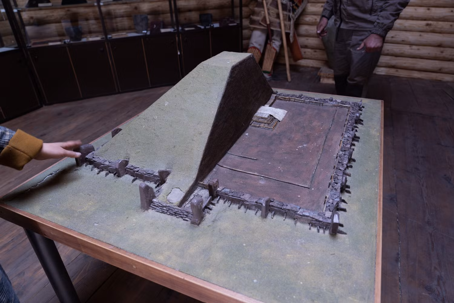 Theo ông Vasily Borgoyakov, chuyên gia về mộ cổ, người Tagar đã mang đến đây hàng chục nghìn mét khối đất đặc biệt, thành phần khoảng 50% cát, 50% đất sét, có tính kết dính khi ướt, để đắp mộ cho thủ lĩnh. Kết quả là một kim tự tháp bằng đất cao lớn hiện lên, có bề mặt lát đá để không bị cuốn trôi.