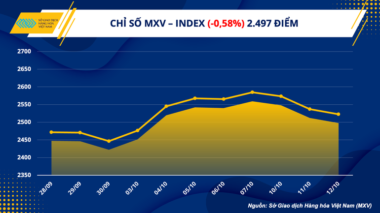 Thị trường chứng kiến các mức biến động mạnh trên nhóm Nguyên liệu công nghiệp và Nông sản, sau khi Bộ Nông nghiệp Mỹ (USDA) phát hành Báo cáo cung-cầu (WASDE) tháng 10 vào đêm qua theo giờ Việt Nam. Do ưu thế tính chất 2 chiều của thị trường giao dịch T0, nhà đầu tư vẫn có thể hưởng lợi ngay cả khi giá giảm, giá trị giao dịch toàn Sở vẫn được duy trì ở định mức 4.400 tỷ đồng.