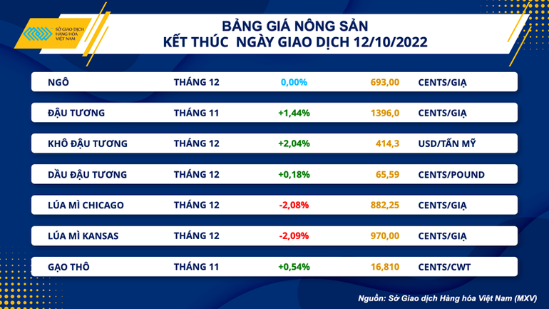 Trong khi đó, giá đậu tương hợp đồng kỳ hạn tháng 11 đã tăng gần 1,5% và ghi nhận phiên thứ 4 liên tiếp đóng cửa trong sắc xanh. Ngay sau khi USDA công bố Báo cáo cung-cầu tháng 10, giá đã tăng mạnh và phá thế giằng co trong giai đoạn trước đó. Những số liệu tiêu cực về vụ mùa năm nay của Mỹ tiếp tục là yếu tố đã hỗ trợ giá trong ngày hôm qua.