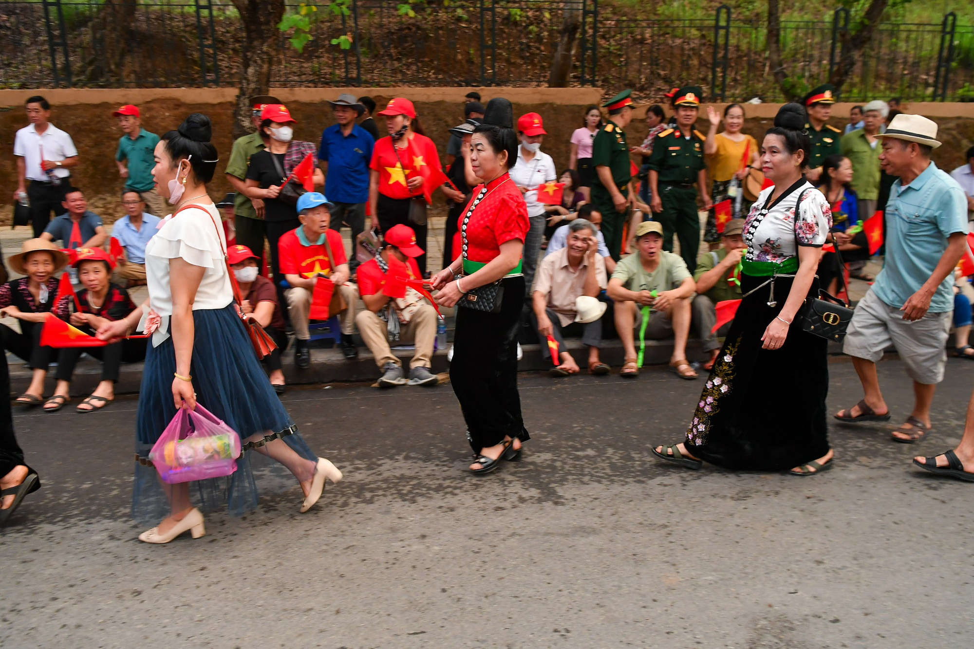 Dịp Kỷ niệm 70 năm Chiến thắng Điện Biên Phủ dường như đã hóa thành... ngày hội chung của non sông. Từ các bản làng xa, hàng trăm, hàng ngàn bà con các dân tộc Tây Bắc cũng đổ về. Lẫn giữa biển người chờ đợi, họ như những bông hoa rừng điểm xuyết sắc hương của riêng mình. Nào là chiếc áo chẽn trắng cao của đồng bào người Thái, màu đỏ tươi của váy người Mông. Nét mặt ai cũng rạng ngời, ngóng đợi.