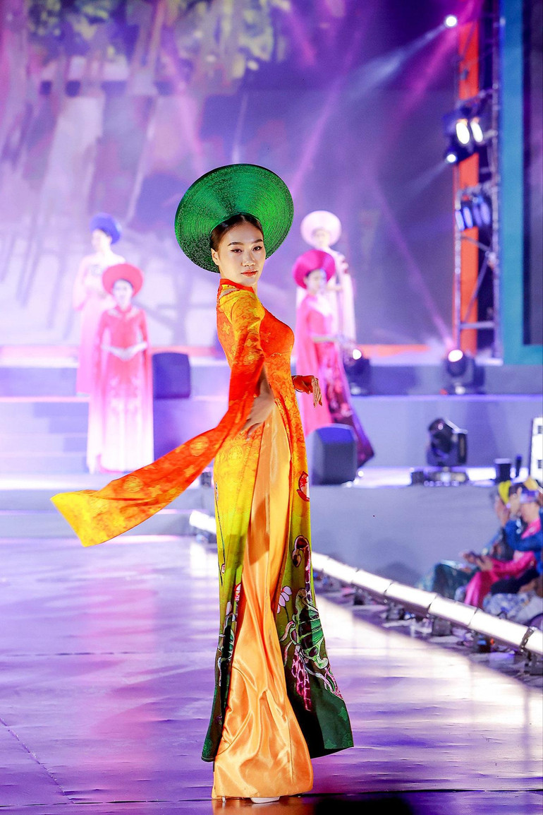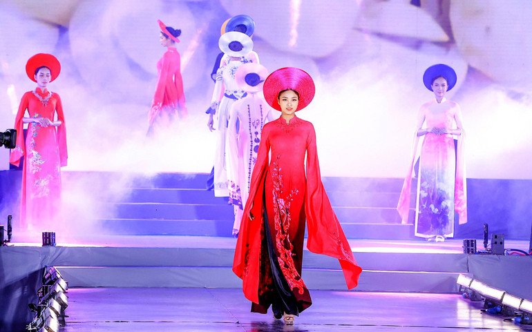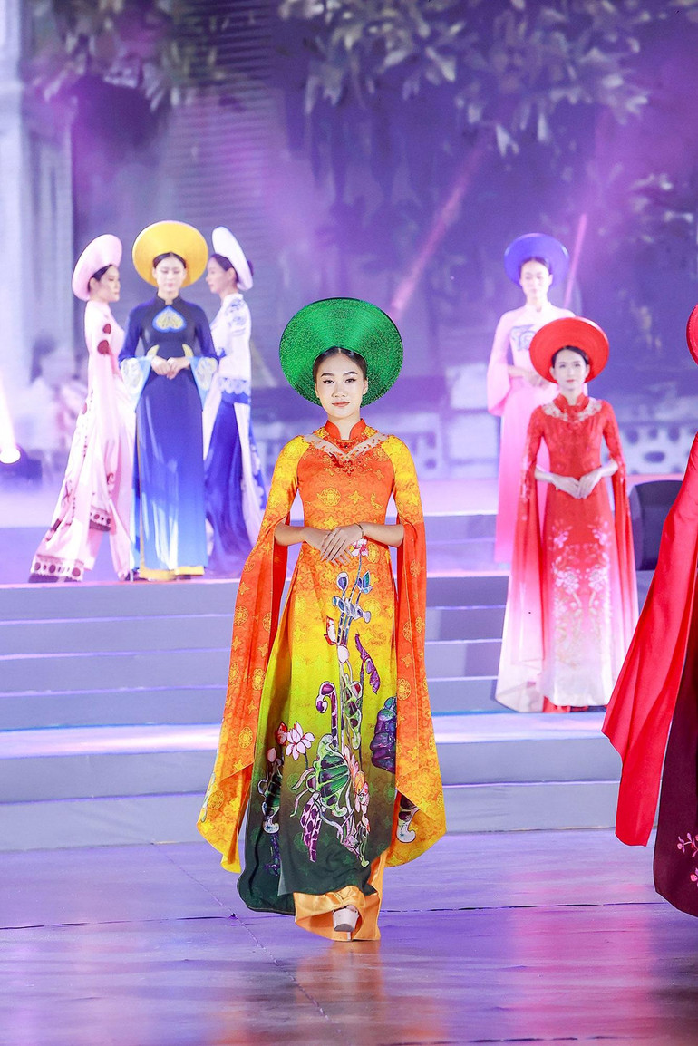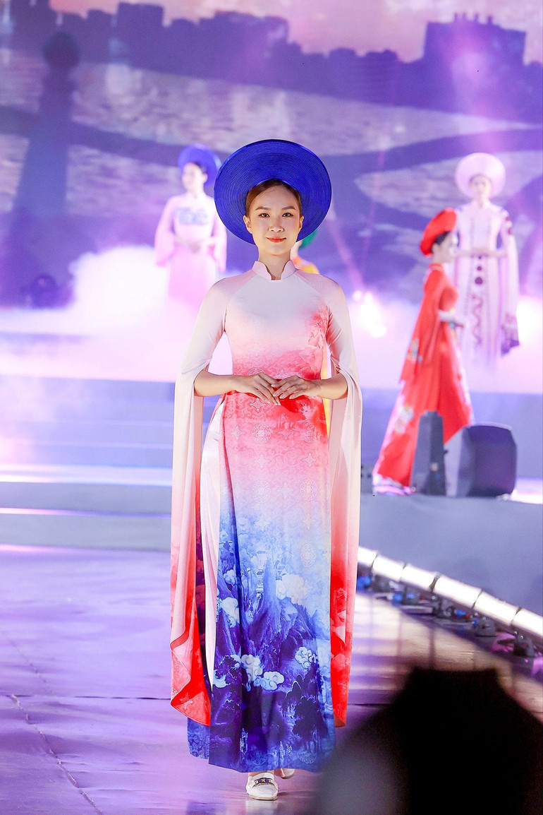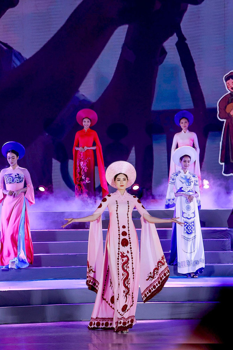 Không chỉ vậy, những chiếc áo dài này cũng đã thể hiện xuất sắc những họa tiết, hình ảnh được tạo cảm hứng từ di vật khảo cổ Cung đình Huế và Hoàng Thành Thăng Long mang nét cổ xưa, huyền bí, hấp dẫn. Bộ sưu tập không chỉ thể hiện những di sản độc đáo trong kiến trúc, mỹ thuật của nhiều triều đại, mà còn mang niềm tự hào của người trẻ Việt với những giá trị cổ gắn với một sản phẩm hiện đại.