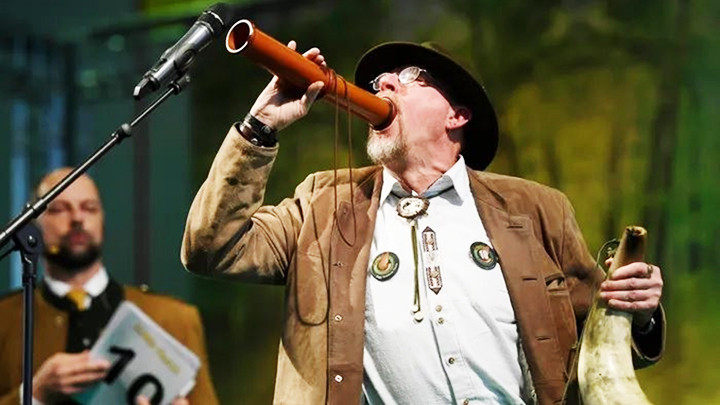 Nhiều thợ săn người Đức (trong ảnh) đã tham gia cuộc thi bắt chước tiếng kêu của hươu, nai toàn quốc. Đây là truyền thống độc đáo đã có từ hàng trăm năm nhằm thu hút con mồi xuất hiện trong ngày đi săn. Năm nay, cuộc thi diễn ra tại hội chợ Jagd & Hund, thành phố Dortmund phía tây nước Đức.