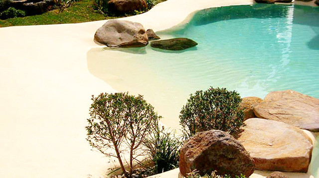 Công ty thiết kế hồ bơi Tây Ban Nha Piscinas de Arena đã có sáng kiến thiết kế hồ bơi gia đình thành một ốc đảo (trong ảnh). Sử dụng vật liệu chống trơn trượt mịn làm từ bê-tông trộn với cát nén, đội ngũ thi công của Piscinas de Arena có thể hoàn thiện thiết kế hồ bơi độc đáo này trong vòng 30 ngày.