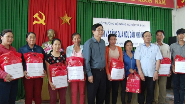 Bộ trưởng Cao Đức Phát trao 10 suất quà tặng bà con ngư dân gặp khó khăn tại thị trấn Thuận An.