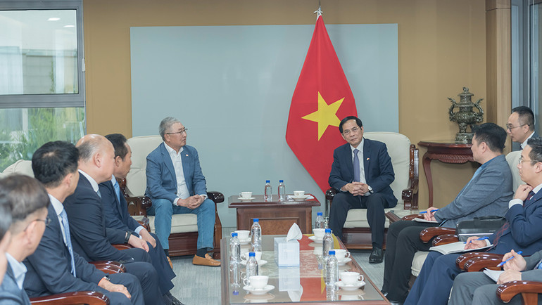 Trong khuôn khổ chuyến thăm, chiều ngày 30/5/2024, Bộ trưởng Ngoại giao Bùi Thanh Sơn đã tiếp Chủ tịch Hội giao lưu kinh tế, văn hóa Hàn Quốc - Việt Nam (KOVECA) Kwon Sung Taek (Quân Sâng Théc).