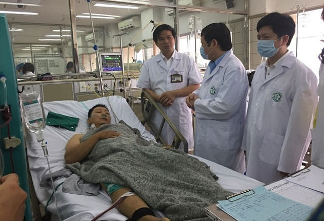 Thứ trưởng Y tế Nguyễn Viết Tiến thăm hỏi bệnh nhân được chăm sóc đặc biệt sau sự cố y khoa chạy thận nhân tạo tại Bệnh viện đa khoa Hòa Bình.