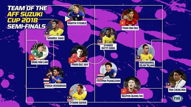 Đội hình tiêu biểu vòng bán kết AFF Cup 2018 theo đánh giá của FOX Sports châu Á. (Ảnh: FOX Sports châu Á)
