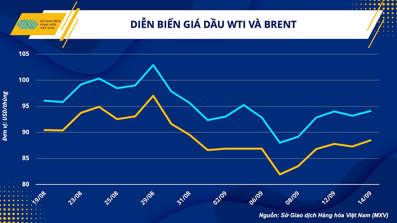 Kết thúc phiên giao dịch ngày 14/9, giá WTI tăng 1,34% lên 88,48 USD/thùng, trong khi giá Brent tăng 1% lên 94,1 USD/thùng.