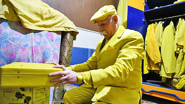 Ông Abou Zakkour (68 tuổi) sống tại TP Aleppo (Syria) có một sở thích đặc biệt với mầu vàng (trong ảnh) và chỉ mặc quần áo mầu vàng suốt 35 năm qua. Ông Zakkour bắt đầu mặc mầu vàng từ năm 1983 vì cho rằng đó là mầu sắc đại diện cho tình yêu. Nhiều vật dụng trong căn hộ nhỏ của ông cũng có mầu vàng, từ khăn trải bàn, ga trải giường cho tới cả thùng rác.