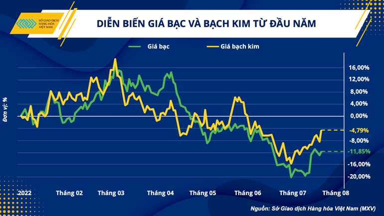 Thực tế, sau khi FED quyết định mức tăng lãi suất thêm 75 điểm cơ bản trong cuộc họp hồi cuối tháng 7 vừa qua, giá bạc và bạch kim ngay lập tức tăng vọt. Thậm chí, bạc còn có phiên tăng gần 7% và là mức tăng mạnh mẽ nhất kể từ ngày 1/2/2021. Áp lực từ lạm phát lập đỉnh trong tháng 6 tại Mỹ đã khiến nhiều nhà đầu tư lo ngại về một mức tăng lãi suất cao hơn. Mặc dù vậy, FED đã không gây ra sự bất ngờ nào cho thị trường và nhóm kim loại quý được hưởng lợi từ sự suy yếu của đồng dollar Mỹ. Cả bạc và bạch kim đều đang phục hồi từ mức đáy 2 năm được thiết lập vào giữa tháng 7 vừa qua.
