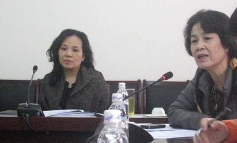 Bà Ngô Phương Lan và bà Nguyễn Thị Hồng Ngát tại buổi công bố văn bản giám định về phim Bụi đời Chợ Lớn.