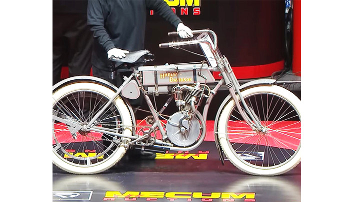 Tại phiên đấu giá xe cổ được tổ chức tại Las Vegas (Mỹ), một chiếc xe máy hiệu Harley-Davidson Strap Tank năm 1908 (trong ảnh) đã được đấu giá thành công với mức 935.000 USD. Chiếc xe cổ có tuổi đời hơn 100 năm, được phát hiện vào năm 1941 và sau đó đem phục hồi, là một trong những dòng xe Harley- Davidson đầu tiên được sản xuất.