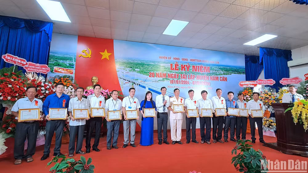 Dịp này, nhiều tổ chức, cá nhân có nhiều đóng góp cho quê hương Năm Căn trong 20 năm được nhận Bằng khen của Chủ tịch Ủy ban nhân dân tỉnh và giấy khen của Chủ tịch Ủy ban nhân dân huyện.