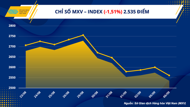 Nhóm năng lượng dẫn dắt xu hướng chung của toàn thị trường. Bên cạnh mức tăng không đáng kể của dầu WTI, tất cả các mặt hàng xăng dầu còn lại đều giảm mạnh đến rất mạnh. Khí tự nhiên đánh mất 7,3%, xuống 8,15 USD/ MMBtu, mức thấp nhất trong vòng gần 1 tháng trở lại đây. Trước biến động rất mạnh của diễn biến giá hàng hoá thế giới, dòng tiền đầu tư trong nước vẫn cho thấy sự ổn định. Giá trị giao dịch toàn Sở ghi nhận ở mức 4.300 tỷ đồng.