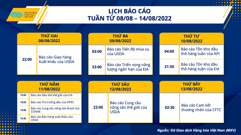 Đối với nhóm năng lượng và kim loại, thông tin về chỉ số giá tiêu dùng CPI tháng 7 được Bộ Thương mại Mỹ công bố vào tối thứ 4 sẽ có tác động mạnh đến giá. Đây là dữ liệu trọng tâm giúp các nhà đầu tư đánh giá về tình hình lạm phát và triển vọng tăng lãi suất của Cục Dự trữ Liên bang Mỹ (FED) trong cuộc họp tháng 9 sắp tới. Theo MXV, nhiều khả năng chỉ số CPI sẽ hạ nhiệt so với mức đỉnh được thiết lập vào tháng 6, do niềm tin của người tiêu dùng liên tục suy yếu có thể sẽ ảnh hưởng tới sức mua. Giá các mặt hàng trong nhóm năng lượng và kim loại có thể sẽ được hỗ trợ. Tuy nhiên, mức giảm của CPI được dự đoán sẽ không quá sâu. Do đó, lo ngại về việc FED mạnh tay thắt chặt tiền tệ vẫn tiềm ẩn những rủi ro cản trở đà tăng mạnh của các mặt hàng này.