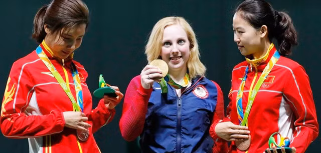 Xạ thủ người Mỹ mới 19 tuổi Viếc-ghi-ni-a Tha-sơ (ở giữa, trong ảnh) đã gây bất ngờ lớn trong làng bắn súng thế giới khi xuất sắc đoạt Huy chương vàng (HCV) đầu tiên của Ô-lim-pích Ri-ô 2016 ở nội dung 10m súng trường hơi. Bất ngờ bởi tất cả đối thủ của Tha-sơ đều là những xạ thủ rất mạnh ở nội dung này như đương kim vô địch thế giới Yi Silling của Trung Quốc và một xạ thủ khác cũng của Trung Quốc vừa lập kỷ lục Ô-lim-pích 2016 là Li Du ở vòng loại với số điểm 420,7 điểm.