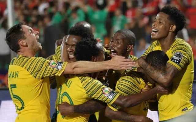 Nam Phi ăn mừng chiến thắng gây sốc trước chủ nhà Ai Cập. (Ảnh: CAN 2019)