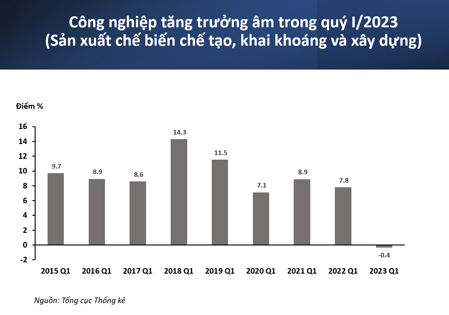 Tuy nhiên, những “cơn gió ngược” gây cản trở tăng trưởng kinh tế đã xuất hiện từ quý IV/2022 ở tất cả các nền kinh tế châu Á, trong đó có Việt Nam. Theo đó, sản xuất công nghiệp đều sụt giảm ở một số nền kinh tế xuất khẩu hàng chế biến chế tạo do nhu cầu bên ngoài giảm.