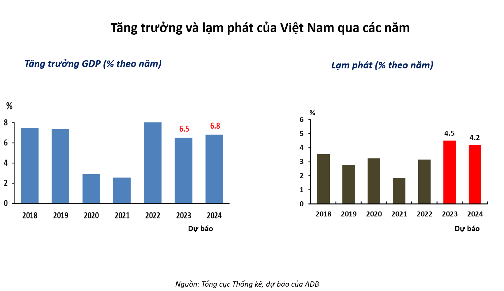 Đây là khuyến nghị của các chuyên gia Ngân hàng Phát triển châu Á (ADB) đưa ra trong buổi công bố báo cáo Triển vọng phát triển châu Á (ADO) tháng 4/2023, tổ chức ngày 4/4 tại Hà Nội. Theo đó, ADB dự báo tăng trưởng kinh tế của Việt Nam sẽ đạt mức 6,5% trong năm nay và tăng lên 6,8% trong năm 2024.