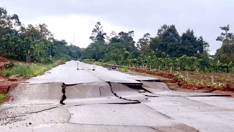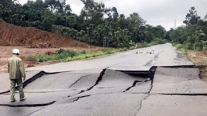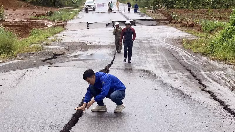 Chiều 5/8, Ủy ban nhân dân thành phố Bảo Lộc thông tin, do mưa lớn kéo dài từ ngày 3 đến sáng 4/8, khiến tuyến đường tránh phía nam thành phố, đoạn qua phường Lộc Sơn, bị sụt lún kéo dài.