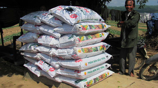 Số phân này công ty Anh Trang mới chở đến đền bù cho người trồng dưa ở Xuân Quang 1, huyện Đồng Xuân.