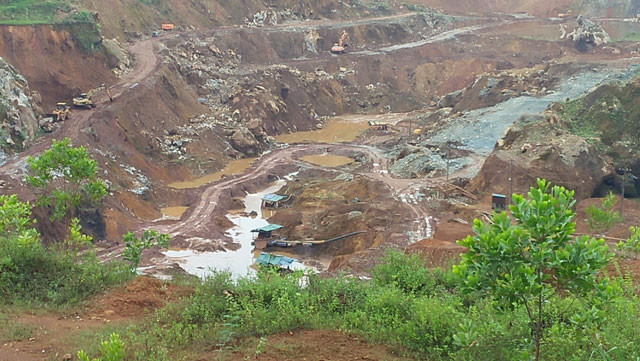 Cách tổ 14, thị trấn Trại Cau khoảng hơn 300 m là mỏ Núi Quặng đang khai thác sắt dưới tầng sâu.