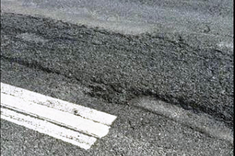 | Mặt đường xuống cấp tạo thành vệt sóng trâu tại Km 109+800. |