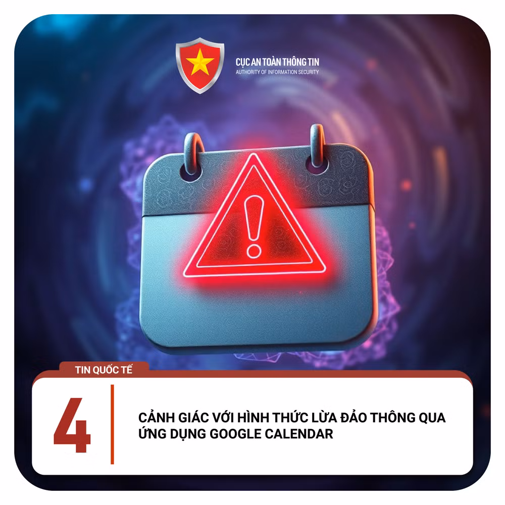 CẢNH GIÁC VỚI HÌNH THỨC LỪA ĐẢO THÔNG QUA ỨNG DỤNG GOOGLE CALENDAR
