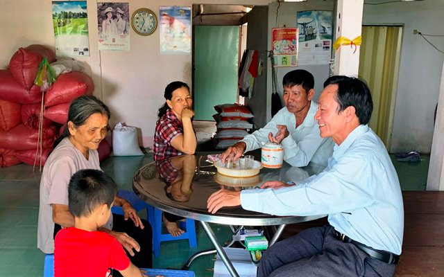 PV Nhân Dân điện tử và cán bộ địa phương trao đổi với bà Lê Thị Có.