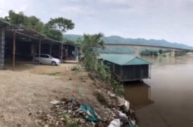 Nhà nổi xây dựng trái phép của bà Huệ ở lòng sông Hồng, thuộc khu vực Di tích lịch sử, văn hóa quốc gia đền Bảo Hà.