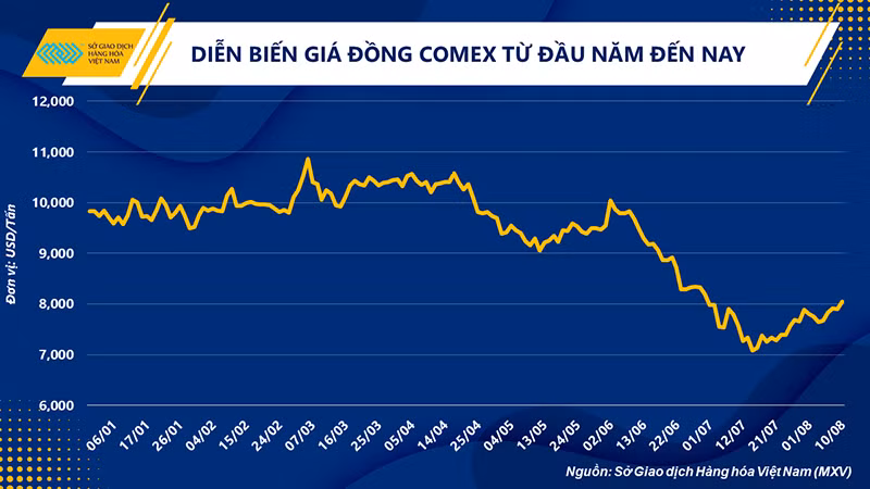 Kể từ khi Mỹ chính thức thông qua việc đánh thuế 25% lên 50 tỷ USD hàng hoá nhập khẩu từ Trung Quốc vào tháng 6/2018, giá đồng trên Sở COMEX đã đánh mất khoảng 22% giá trị chỉ trong vòng 2 tháng. Sau đó, giá duy trì ở mức thấp trong suốt 3 năm khi hàng loạt những giới hạn kinh tế liên tục được thiết lập. Mặc dù các sản phẩm đồng không phải là mặt hàng chiếm tỷ trọng cao trong danh sách giao thương giữa hai quốc gia này, tuy nhiên, đây lại là nguyên liệu rất quan trọng trong chuỗi sản xuất loạt hàng hóa chịu tổn thương nặng nề nhất từ các biện pháp đánh thuế. Đặc biệt, đối với Trung Quốc, đây là quốc gia chiếm 50% nhu cầu đồng trên toàn thế giới. Con số này tại Mỹ cũng rơi vào khoảng 8%.