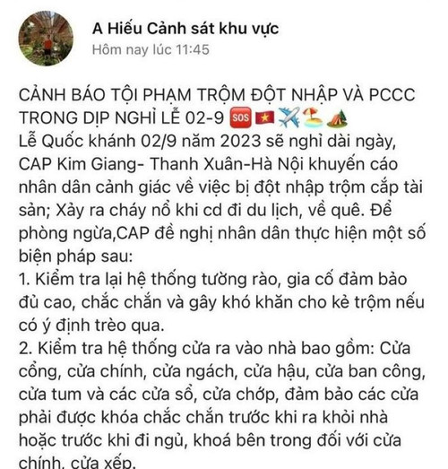 Những cảnh báo này đã được Công an các xã, phường, thị trấn trên toàn thành phố chuyển đến người dân qua hệ thống mạng xã hội, tin nhắn zalo các hội, nhóm của khu dân cư.