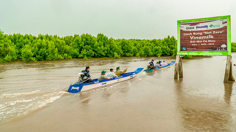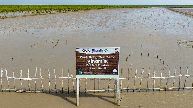 Nằm sâu trong khu vực lõi Vườn quốc gia Mũi Cà Mau, cánh rừng Net Zero Vinamilk do Vinamilk đồng hành cùng Trung tâm Bảo tồn Thiên nhiên Gaia, Vườn quốc gia Mũi Cà Mau triển khai khoanh nuôi xúc tiến tái sinh từ tháng 8/2023. Dự án có diện tích 25ha, với mục tiêu tái sinh 100.000-250.000 cây xanh trong 6 năm (2023-2029).