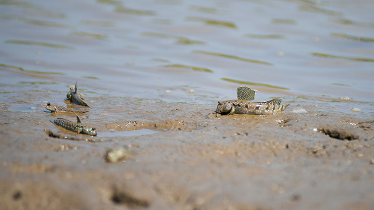Nhờ được bảo vệ, vô vàn thủy-hải sản đã tìm đến cánh rừng Net Zero Vinamilk để sinh sản. Thoăn thoắt trên bãi bồi là các loài: cá thòi lòi, cá bống sao, cua, ba khía, ốc… đang tìm thức ăn.
