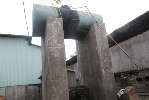 Bồn chứa nước phục vụ sản xuất được dựng ngay sát vách nhà kho thuốc BVTV.