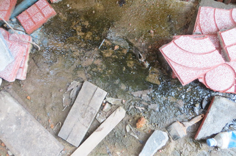 Cũng theo anh Diệp, vào mùa nắng mùi hôi thuốc BVTV từ nhà kho bốc ra nồng nặc, còn vào mùa mưa nước từ nhà kho chảy ra đất xung quanh xanh rờn, ai nhìn thấy cũng sợ hãi.