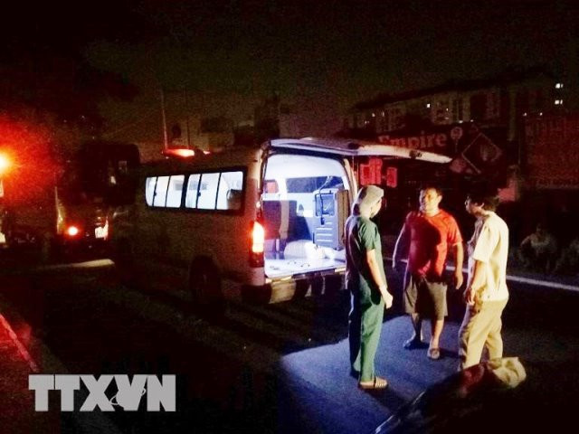 Hàng chục xe cấp cứu được điều đến hiện trường để đưa nạn nhân và người bị thương đến bệnh viện. (Ảnh: Thành Chung/TTXVN)