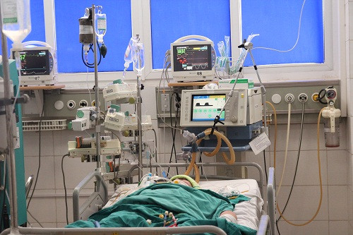 Bệnh nhân Nguyễn Thị Nhung những ngày còn nằm điều trị tích cực tại bệnh viện.
