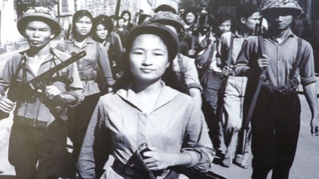 Bà Nguyễn Thị Tý (đứng đầu) nữ tự vệ phường Giang Biên. Ảnh tư liệu