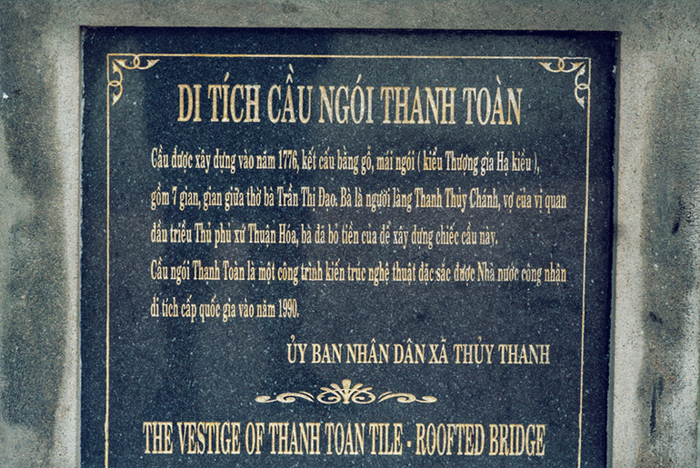 Cầu ngói Thanh Toàn có kiến trúc "thượng gia hạ kiều": trên nhà dưới cầu. Ở Việt Nam hiện nay còn chừng 4-5 chiếc cầu tương tự thế, nổi tiếng nhất chính là Chùa Cầu, Hội An. Thế nhưng khác với bên phố Hội ồn ào và xô bồ, cầu ngói Thanh Toàn lại nên thơ và thanh bình hơn nhiều do ít người biết đến.
